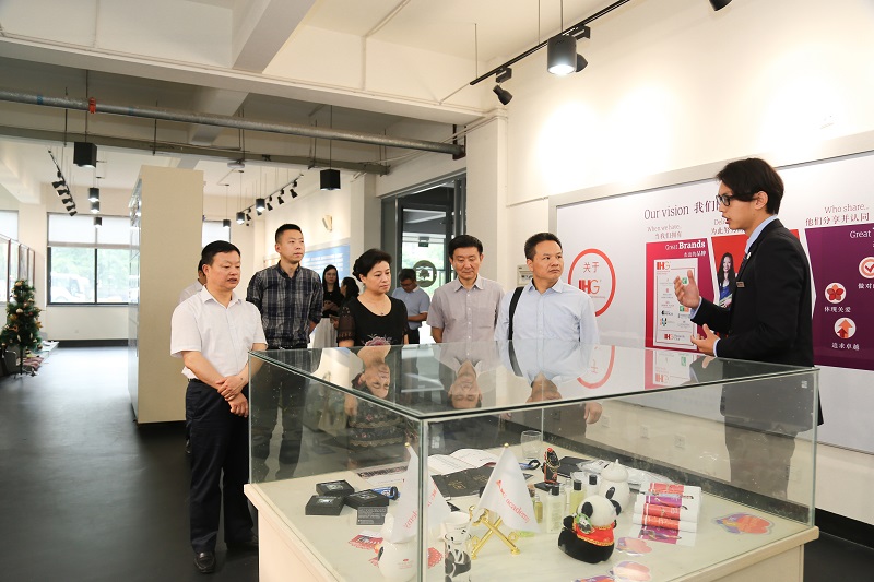 贾贵洲处长(左三)、赖英莉调研员(左一)参观酒店博物馆