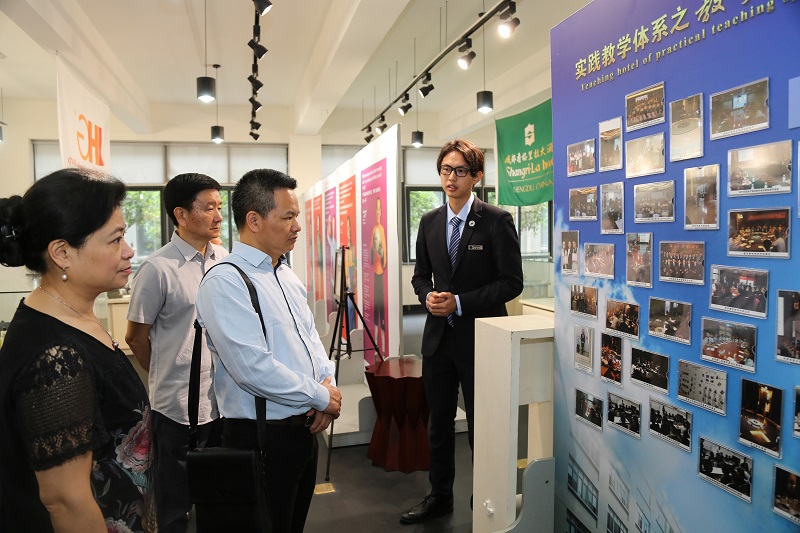 学院院长张智勇,常务副院长余媛,党委副书记、纪委书记龚燕,副院长易贤文,院长助理陈波,董事长助理李晶晶陪同贾贵洲处长、赖英莉调研员一行,对学院创业学院、运动场馆、多功能馆、图书馆、酒店博物馆、艺术设计展等进行了实地考察,详细了解了学院软硬件建设及使用情况、学生学习生活等情况。
