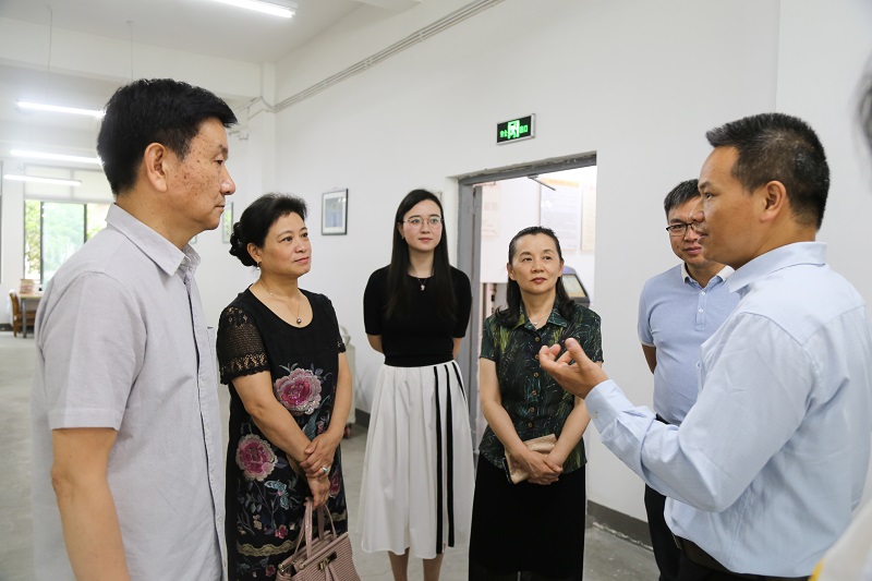 贾贵洲处长(右二)、赖英莉调研员(前排左三)参观艺术馆