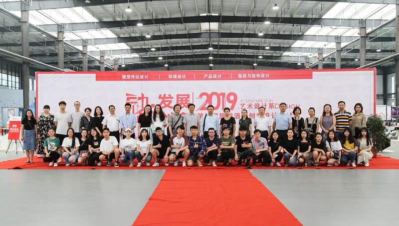 贾贵洲处长、赖英莉调研员参观艺术设计系学生毕业作品展并与现场师生合影