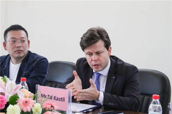 会议由酒店系主任助理徐君宜主持。首先,韩勇院长致欢迎辞,介绍了美国饭店协会(AHLA)和我校的合作的发展历程。随后,刘丹副院长从学院系别组成、在校学生情况以及教学酒店的发展等方面,向Ed Kastli先生做了详细的介绍。美国饭店协会全球事务副主席Ed Kastli先生表示随着旅游业和全球化的发展,中国的酒店数量越来越多对酒店专业的高素质从业人员需求也相对提高。学生在学校除了专业技能需要提升,英语听说的能力也要随之提高。学院和Ed Kastli先生还就AHLA教材的使用和酒店相关证书的需求做了沟通交流。