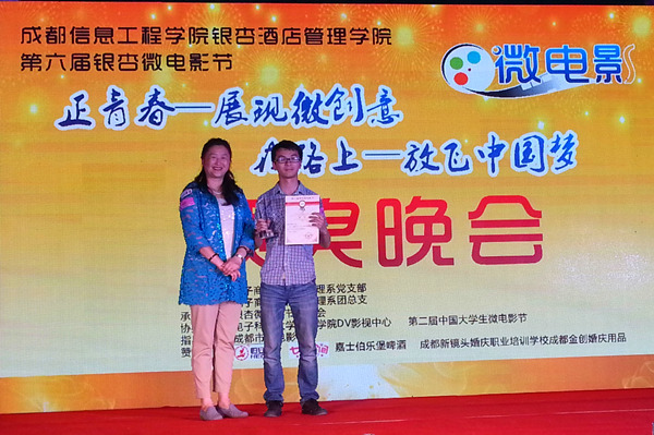 银杏大学生微电影节由电子商务与信息管理系党支部、团总支主办,成都市微电影协会提供指导。本届微电影节是在2013年第五届银杏大学生微电影节成功举办的基础上,再次面向全国大学生微电影爱好者的专业比赛。至今年1月份启动以来,电商系“媒体工作室”共征集到来自北京、广东、湖南等11个省市30余所高校投来的100余部参赛作品。经过网上展播、大众评审、专业评审三个阶段最终由《下一站》、《伞》、《追梦人》等10部微电影作品荣获最佳摄影奖、最佳导演奖、最佳编剧奖、最佳影片奖、最佳创意奖、最佳男女演员奖、最佳人气奖和优胜奖。