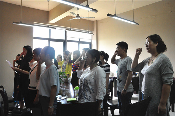 根据学院“两学一做”实施方案的具体措施,着眼立德树人、强化思想引领,5月20日中午,财务管理系教工党支部在1207办公室召开“重温入党志愿,永远跟党走”主题党日活动,由学院党委副书记龚燕同志、财务管理系党总支书记景蜀萍同志带头为教职工党员做“两学一做”学习教育专题辅导,教育引导教职工党员做“政治过硬、教书育人、实绩突出、爱岗敬业”的党员,并组织党员教师讨论入党初心、谈人生理想,分享身边的先进事迹,最后由龚燕带领教职工党员重温入党誓词,强化党员意识。
