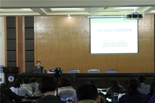夏明忠教授在较全面地了解了学院“精准教育模式”的总体构想和试点情况后,用了三个词“复合性、综合性、应用型”概括了精准教育模式的目标定位,用四句话“实践向导,工学结合;产教融合,协同育人;国际视野,开放办学;职业标准,行业对接”对试点情况进行了评价。随后夏教授结合总体形势、国家政策和典型院校的情况,以新建本科院校转型发展为主线进行了专题发言,在办学定位、应用型人才培养模式、人才培养方案制定、课程建设与教学改革等方面谈了自己的观点,并对学院提出了具有针对性的建议。