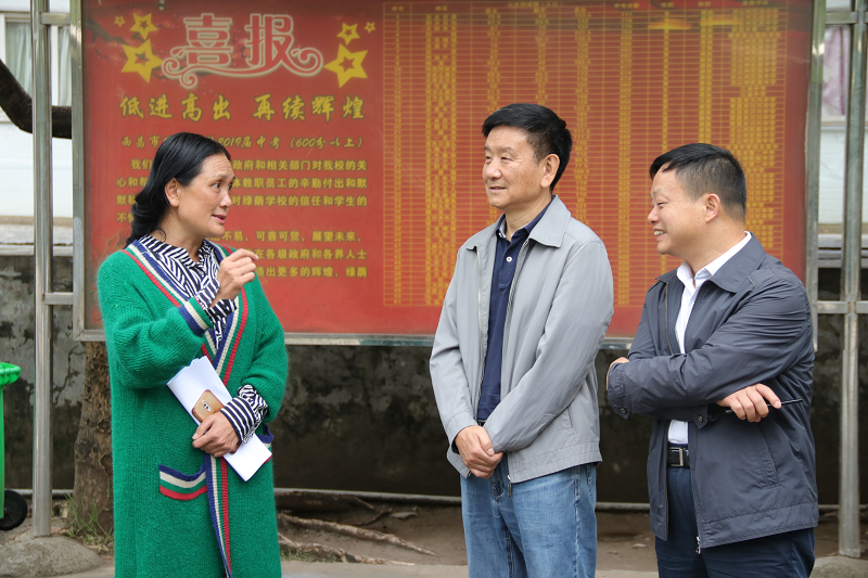 根据团中央关于大学生暑期三下乡活动相关部署,结合四川省教育厅、四川省教育基金会发起的“牵手乡村教育”公益活动,学院募集了20名学生志愿者,组队于7月5日前往西昌市月华乡的绿荫学校,开展为期十天的“三下乡”精准关爱志愿服务活动。7月13日上午,由学院院长张智勇带队,副院长易贤文,院团委、学生工作处负责人等一行6人赴西昌月华乡绿荫学校看望我院“三下乡”支教志愿者师生。绿荫学校校长王荣惠接待了学院一行,陪同参观了该校校史墙、学生宿舍和课堂,介绍了绿荫学校的发展历史、办学特色和我院学生志愿者们在这里的服务情况,她肯定了志愿者们认真负责的工作态度,赞扬了志愿者们的奉献精神。