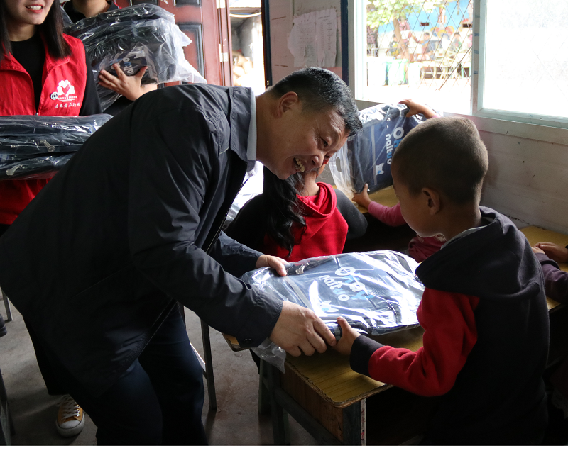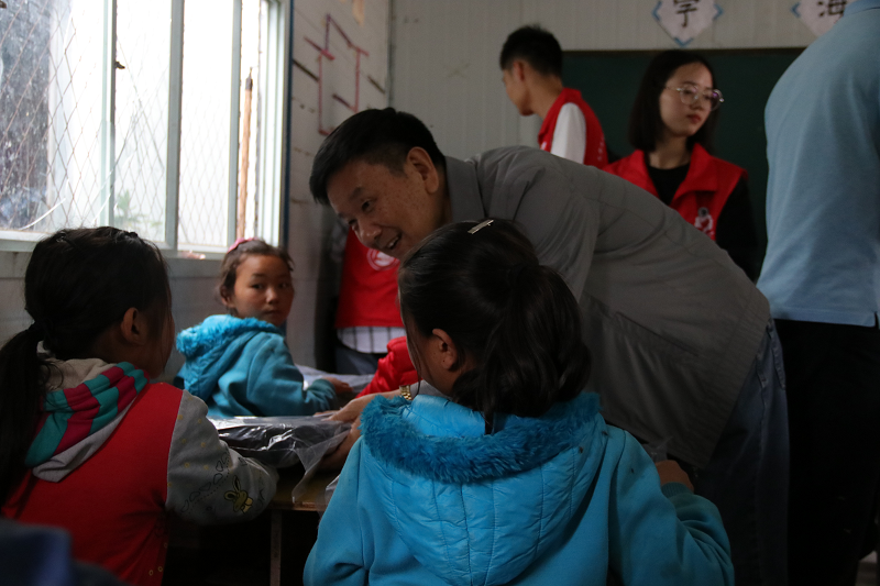 最后学院一行向绿荫学校的小朋友们分发了书包等学习用品,并祝福他们快乐健康成长。