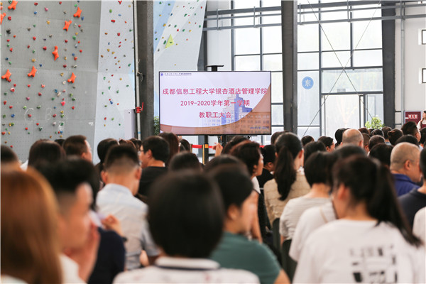 8月24日上午9:00,学院2019-2020学年第一学期教职工大会在银杏馆召开。学院全体党政领导出席大会,各职能部门和教学单位负责人,全体教职工和后勤集团管理人员参加大会。会议由学院董事、常务副院长余媛主持。
