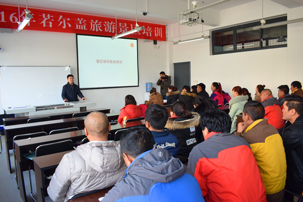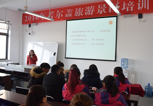 1月12日,学院在行政楼304召开了“2016年若尔盖旅游景区培训结课”会议,会议由外语系党总支副书记李丹主持,若尔盖黄河九曲第一湾花湖旅游景区副总经理张黎对此次培训进行了总结,学员们也对此次培训发表了自己的学习感言。