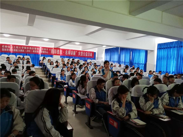 信息工程管理系携手国家职业汉语能力测试(ZHC)项目西北管理中心,分别于4月26日在广元职业高中举行“西部送教•职业生涯规划”大型公益的讲座,4月27日在广元市川师大万达中学和青川县第一高级中学举行两场“西部送教•心理释压”大型公益讲座。