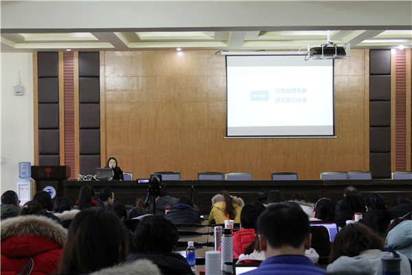 2016年四川省教育厅启动了对全省高校首轮专业评估工作,学院英语、会计学专业参与了本次专业评估。为全面系统总结参与专业评估工作的经验,帮助各专业准确把握评估要求和指标体系,以评促建,切实提高专业建设水平,学院邀请省教育厅高教处宋亚兰副处长于2017年1月17日下午到校指导工作,面向全院教学管理人员、系部主任、教师、辅导员和教辅人员作了“专业建设与专业评估”的专题报告。报告会由教务处侯波处长主持,学院院长韩勇、副院长陈进忠出席了报告会。