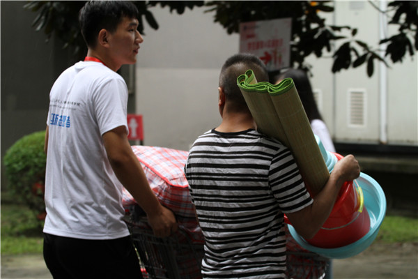 志愿者帮忙搬运行李