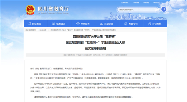 2019年8月26-27日,由四川省教育厅、中共四川省委统战部等12个单位共同主办,由成都理工大学、成华区政府、中国建设银行成都铁道支行共同承办“建行杯”第五届四川省“互联网+”学生创新创业大赛省级决赛在成都理工大学举行。本届大赛赛制改革,竞争格外激烈,在总体奖项减少,参赛项目数量增加的大背景下,经过激烈的争夺,我校最终荣获1个银奖和5个铜奖,是我校参加互联网+大赛以来的最好成绩。