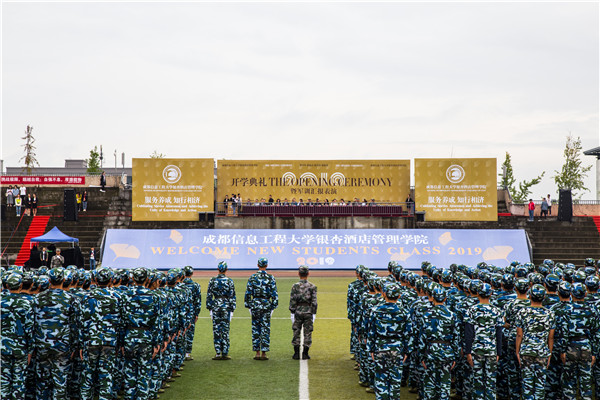 9月17日上午,学院2019年新生开学典礼暨军训汇报表演在学院田径运动场隆重举行。军训承训部队首长杨虎、朱魁亮,学院院长黎明,党委副书记桑作银,常务副院长余媛,党委副书记、纪委书记、工会主席龚燕,学院副院长魏昭、易贤文、付静、袁丁,院长助理陈波、黄芳,和各教学单位及相关职能部门负责人,全体军训教官,教师代表、校友代表和19级全体新生共3300人参加了大会。开学典礼由副院长易贤文主持。