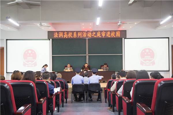 为深入贯彻落实四川省委省政府关于禁毒工作部署,结合我省毒品犯罪新特点,5月10日郫都区人民检察院和郫都区人民法院到我院开展“法润高校系列活动之庭审进校园”活动。郫都区红光街道办主任助理赵杨、郫都区司法局红光司法所所长胥文杰、红光街道办城管交警大队大队长钟德军,学院党委专职副书记桑作银、党委工作部部长马倩、学生工作部部长李瑞泉、保卫部部长张立铣,以及红光街道办综治巡逻队队员、红光街道办城管交警大队队员、我院部分师生共计200余人参加了此次活动。