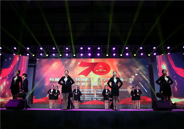9月29日晚,由四川省教育厅、四川省人民政府征兵办公室、四川省国防教育委员会办公室联合主办,学院承办的2019年四川省“爱我国防”大学生演讲比赛决赛在多功能馆举行,来自15所高校的1600余名学生观看了比赛。四川省人民政府征兵办处长刘华勇、四川省国防教育委员会办公室处长梁永、教育厅体育卫生与艺术教育处副处长唐克红、教育厅体育卫生与艺术教育处副处长杨荔、学院党委副书记桑作银、副院长易贤文出席本次活动。国家一级导演孙奇、国家一级演员陈力、国家一级演员赵汉军、四川广播电视台科教频道副总监秋沙和四川省教育科学研究院特级教师曹安玉担任本次比赛评委。本次比赛,15名进入决赛的选手将角逐代表四川省参加全国“爱我国防”大学生演讲大赛4个名额。