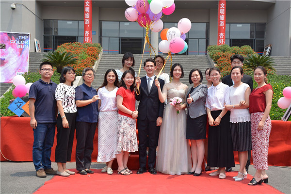 在“文明旅游,‘杏’好有你”的启动仪式中,文先生与旅小姐在主持人的引导下向在场观众传递文明旅游之花,诠释传递文明在旅游活动过程中的重要性。刘丹副院长指出:中国是礼仪之邦,银杏是旅游名校,人们的文明旅游素质,直接反映具有地方道德水准和文明程度。银杏酒店管理学院是我省旅游类特色院校,始终以培育优秀的旅游人为己任,不仅重视培养学生的专业素质和职业道德,更重视培养学生的社会责任感。因此,作为一名银杏人,作为一名旅游人,我们应共同努力,做文明旅游的传播者和引导者,使文明旅游成为每个人的自觉行动。