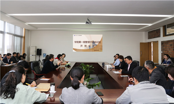 2019年10月16日14点,学院第一期管理干部培训班开班仪式在行政楼510会议室举行,院长黎明,党委副书记桑作银,党委副书记、纪委书记、工会主席龚燕,副院长魏昭、易贤文、付静、袁丁,院长助理黄芳,董事长助理李晶晶出席仪式。