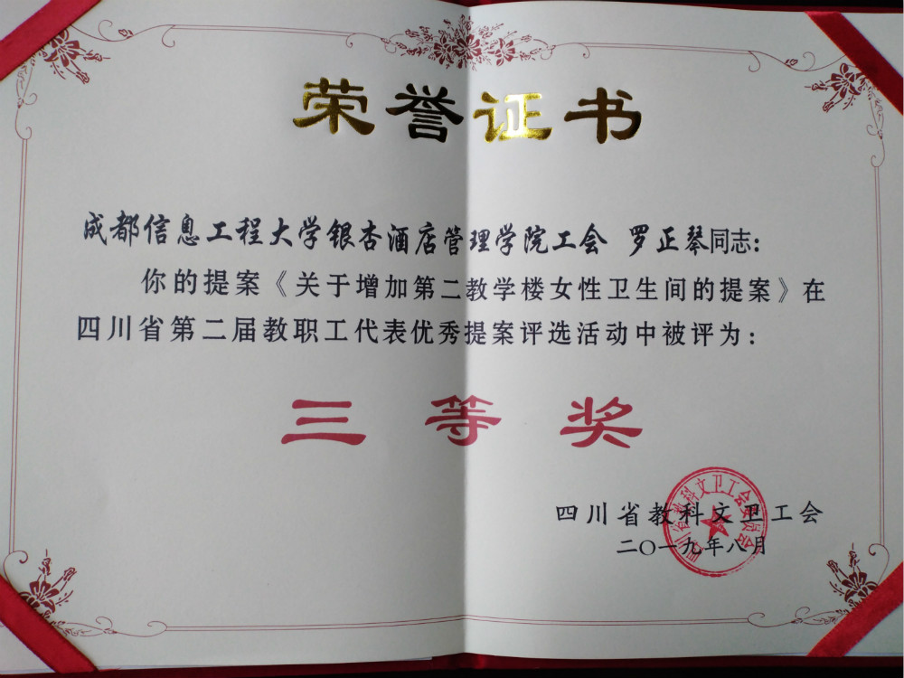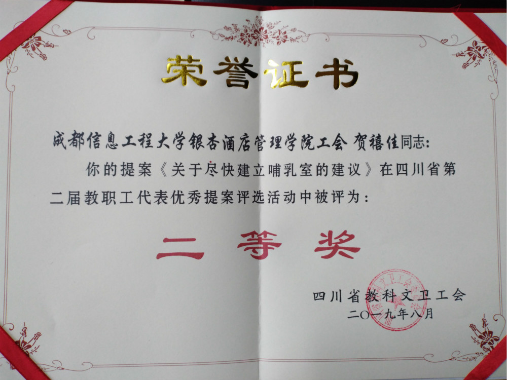 经过学院工会推荐,省教科文卫工会专家评审后,学院第一届一次教代会《关于尽快建立哺乳室的建议》(提案人:贺禧佳)和《关于增加第二教学楼女性卫生间》(提案人:罗正琴)两份提案荣获二、三等奖。此次共有来自全省20个市州、27个高校推荐的470件优秀提案参加评选。评审办公室专门组成专家评审组,最终评选出一等奖9个、二等奖20个、三等奖31个。我院为本次获得表彰的唯一一所民办高校。