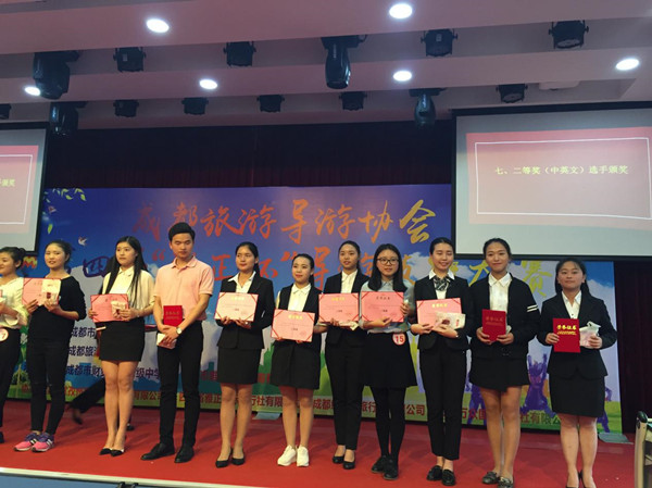 经过笔试、景点讲解、专题抽签讲解的三重PK,刘娟同学以流畅的英文表达和优秀的创新能力,获得院校类英语组二等奖。旅游管理系何萍获职业组英文讲解二等奖,苟欣楠获院校中文组二等奖,戴顺璋获院校中文组三等奖,我院获团队三等奖,廖静娴老师获优秀指导老师奖。