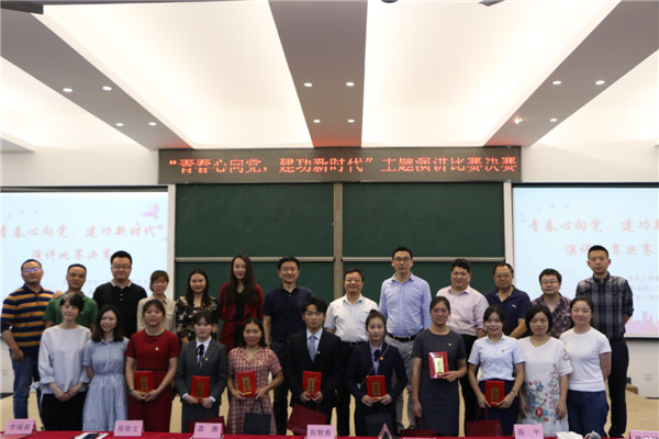 为纪念五四运动100周年,在青年中弘扬“爱国、进步、民主、科学”的五四精神,激励并引领广大青年学子树牢“四个意识”,坚定"四个自信”,自觉做到“两个维护”,同时展现我院青年学生蓬勃向上的精神风貌。我院信息工程管理系党总支和思政部、基础部直属党支部结合思政课堂的《中国近现代史纲要》课程,在全院2018级本科班开展了以"青春心向党,建功新时代”为主题的演讲比赛。此次比赛以思政课堂为依托,以教学班级为单位,通过思政课教学实践环节,有200余名学生参加了初赛,最终选拔出8名学生进入决赛,现场有来自全院200余名观众观看了本次比赛。2019年5月23日下午举行了主题演讲比赛。出席此次比赛的学院领导有:学院院长张智勇,党委副书记、纪委书记、工会主席龚燕,副院长魏昭、易贤文。