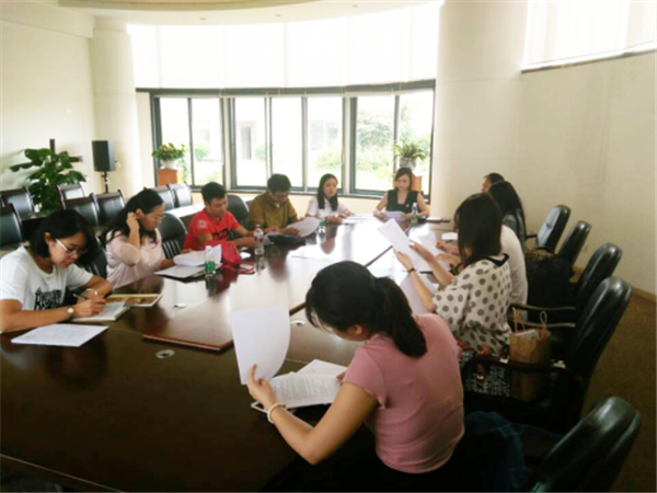 会上,泰国皇家普吉师范大学中文系主任吴主任致辞,在发言中吴主任提到了对泰国留学生在我院学习一年的教学目标和期望。泰方两位老师还细心的和我们分享了泰国学生的学习情况,性格特点等。任课老师们与泰国的两位老师一起讨论课程教材难易程度与学生知识接收情况,老师们也默契地达成了教学共识。
