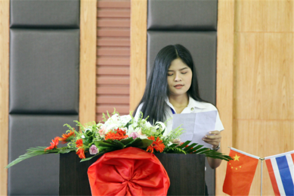 泰国教师代表吴修贤在留学生开学典礼上致辞