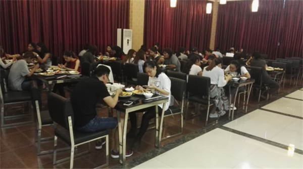 到校后,留学生们由学生助理带队安排好住宿。一路谈笑风生,秩序井然。休息片刻后,为了给泰国学生们接风洗尘,学院为泰国孩子们准备了丰富的自助晚餐。