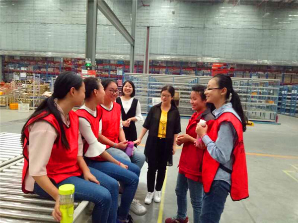 学院教师与京东仓库负责人一同深入到学生实训的各个岗位,与学生逐一进行交流,听取学生的实训感受,解答学生疑问,充分了解学生在专业技能、职业素养、团队意识等各方面的具体表现。李老师首先肯定了同学们的实训表现,重申了本次实训的目的和要求,李老师鼓励各位同学,要重视本次实训,珍惜机会,打开视野,增长见识,为以后走向社会打下坚实的基础。希望同学们把课堂的理论学习,与岗位上的实际操作结合起来,提升自己的综合能力。