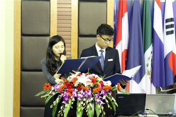 2016年9月14日上午,银杏“国际文化交流节”开幕式典礼暨“第二届来华留学生开班仪式”在学院学术报告厅隆重举行。典礼由国际学院院长何倩与学院优秀学子代表用英中双语联袂主持。
