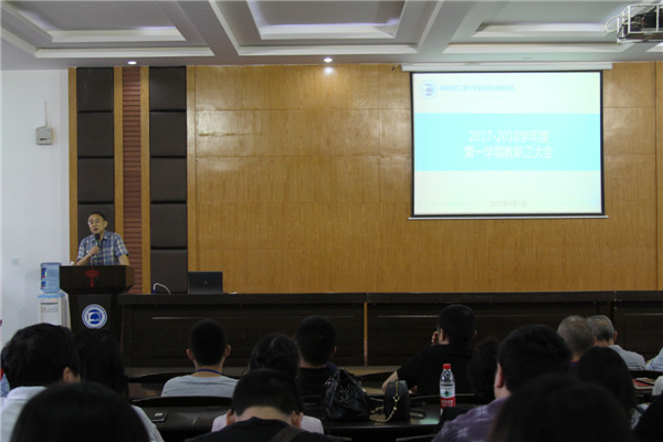 2017年9月1日上午10点,成都信息工程大学银杏酒店管理学院在学术报告厅召开了全院教职工大会。会上韩勇院长代表党政领导班子发表了重要讲话。全体教职工、后勤集团行政管理人员参加了会议。