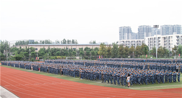 9月9日上午,成都信息工程大学银杏酒店管理学院2017级新生军训动员大会在学院足球场拉开序幕。四川省学生军事训练基地龙泉驿区人民武装部分基地赵明银同志、学院学生工作处处长、院团委书记李瑞泉,学生工作处副处长、院团委副书记黄华,以及参训教官、各系学工秘书、全体新生辅导员、大一新生到场参加。