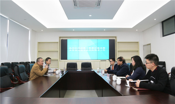 2018年11月22日成都市郫都区就业服务管理局副局长蔡昌林一行来我院交流指导。学院院长许仁忠教授、招生就业处处长杨澎江、继续教育部副部长吴怡娟接待了了蔡局长一行。