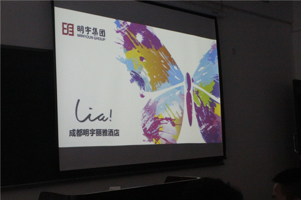 陈经理向同学们介绍了酒店的基本情况,从“有趣、有料、有型”三个方向来打造,再到从“市场、产品、服务、营销、房型”五个片区来定位酒店概念,通过丰富的PPT内容展示,大家也了解到明宇丽雅酒店追求“精致、精确、经典”的管理理念,以便同学们可以准确对酒店进行定位,确定设计对象。