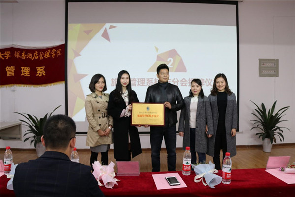 会上,学工秘书陈浩宣读了旅游管理系校友分会任命决定,办公室主任苏薇为“旅游管理系校友分会”进行了授牌仪式。随后,优秀校友从自己的学习、工作、创业经历进行了分享,为学弟学妹们学习、工作职场提出建议。之后,参会人员共同参与了旅游文化产业工作室的开业剪彩仪式。