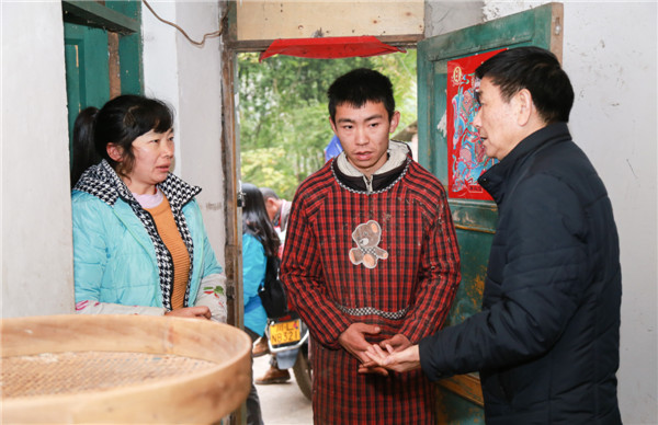 12月14日,许仁忠院长一行在驻村工作队员的陪同下来到学院定点帮扶村——雪口山乡永兴村,深入三户贫困户家中,了解他们家庭生活生产和子女教育情况并送上慰问品,衷心祝愿广大乡亲早日脱贫奔康,过上幸福美满的生活。
