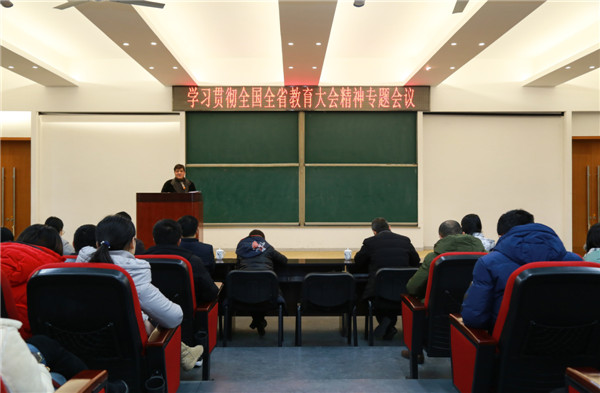 许仁忠院长指出,全国全省教育大会对学院教育工作具有十分重大的意义,学习和贯彻全国全省教育大会精神是当前和今后学院一项十分重要的工作。习总书记讲话中提出的“九个牢牢把握”以及“培养什么样的人、怎样培养人、为谁培养人”就是学院教育工作的根本原则和遵循。他强调,今后学院各级干部职工要认真贯彻落实全国全省教育大会精神,把思想统一到大会的要求上来,努力培养出符合党和国家要求的“德智体美劳”全面发展的社会主义建设者和接班人。