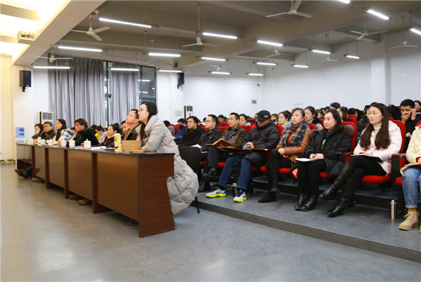 2018年12月28日下午,学院在A1119教室召开学习贯彻全国全省教育大会精神专题会议。学院党政领导许仁忠、桑作银、余媛、龚燕、张智勇、易贤文、黄芳、陈波出席,中层干部、副高及以上职称教师、后勤集团办公室主任及各部门经理、教师代表共150余人参加了会议。会议由许仁忠院长主持。