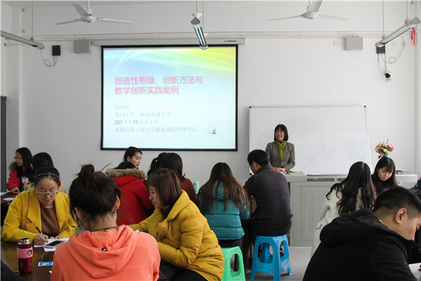 2017年11月29日下午14点30分,我院教师教学发展中心邀请厦门大学教育研究院教授、西南交通大学教师发展中心专聘教授、美国马萨诸塞大学教育学院教育学博士、博士后范怡红教授为学院教师带来了以《创造性思维和创新方法》为主题的讲座。