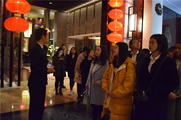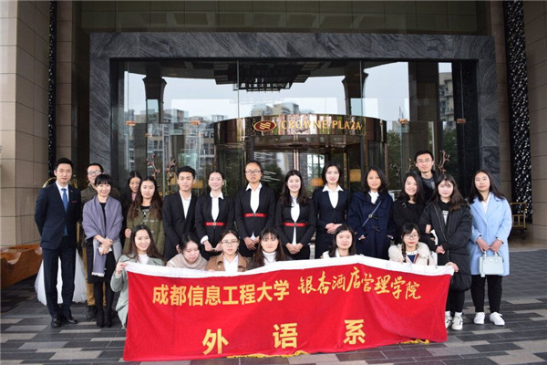 以实践教学来巩固专业发展,提升学生的实践能力、专业知识以及综合素质,2017年12月1日,外语系办公室主任杨澎江老师、实验室管理冯源老师,带领15级英语本科旅游酒店英语方向同学到成都保利公园皇冠假日酒店开展实践交流活动。