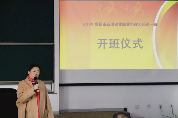 2016年11月14日上午,成都信息工程大学银杏酒店管理学院在1123教室举办了2016年成都市新增农业职业经理人培训班开班仪式。学院副院长沈锦渝、保卫处副处长何诗源,以及学院招生就业处老师参加本次开班仪式。参加此次培训的学员主要来自温江、崇州、彭州、都江堰等地,共计100名。