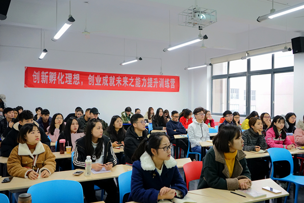 为深入学习党的十九大精神,认真贯彻十九大关于就业创业和宣传舆论工作的重大安排部署,培养我院学生的创新思维,提升创业能力。2017年11月25日至2017年12月9日,我院创业学院携手成都春晨文化传媒有限公司举办了创业能力提升训练营。邀请了成都市创客家众创空间项目总监黄伟,上海悦启仕教练机构总经理及创业家教练李涛,四川扬帆起航投资咨询有限公司执行董事、上市辅导顾问及创业辅导导师罗攀,成都小样社区创新创业孵化园副总、西南财大培训中心刘国强作此次训练营的培训导师。我院学生工作处处长兼创业学院院长李瑞泉、招生就业处副处长兼创业学院副院长欧华国参加了开班仪式。本届创业大赛前三名的项目团队及校内科技园项目团队均到场参加。