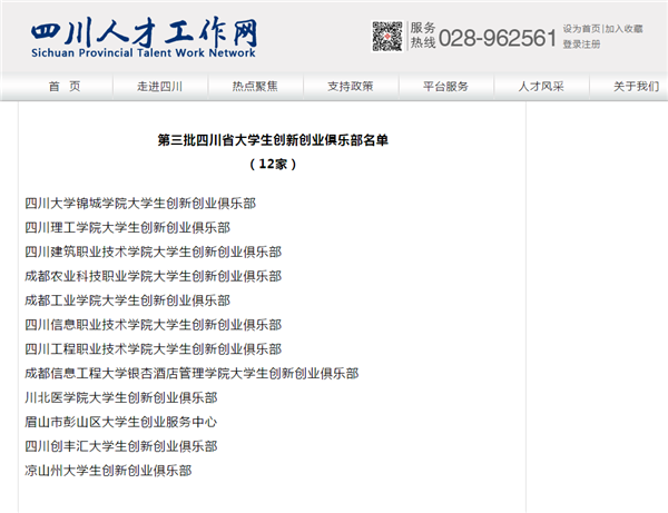 四川省大学生创新创业俱乐部名单