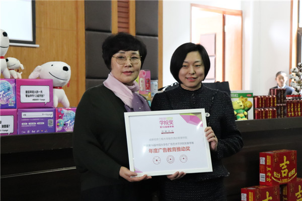 巡讲分为领导致辞、学院奖项目介绍、颁奖、品牌讲品牌、大师讲创意五个环节。巡讲伊始,刘丹副院长代表学院致辞,对远道而来的各位嘉宾表示热烈欢迎。刘院长提到新时代是要发展复合型创新人才,构建与消费者直接沟通的平台,大广节则是一个很好的桥梁,希望同学们能够把握本次机会,用心洞察,清晰解读策略单,做出精彩的作品,将平日所学理论带入实践,提升自己专业实操能力。随后组委会为感谢学院为中国广告教育做出的贡献,组委会代表广告人文化集团人力资源总经理穆萍特别为我院颁发了年度广告教育推动奖,刘丹副院长代表学院接受荣誉。