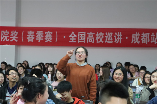 三月和熙照银杏,春风吹响艺术系,3月14日,第16届中国大学生广告艺术节学院奖·春季赛全国高校巡讲·成都站在我院激情开讲。学院副院长刘丹,教务科研处副处长张娅,艺术设计系党总支副书记兼办公室主任孙传宝,广告人文化集团人力资源总经理穆萍,创意大师年轻盟执行长郭宗铠,各命题企业代表以及四川艺术职业学院、西华大学、四川大学锦城学院等成都本地各高校的师生们参加了本次巡讲。