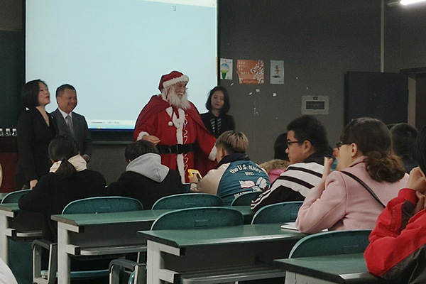 圣诞老人与学生现场互动