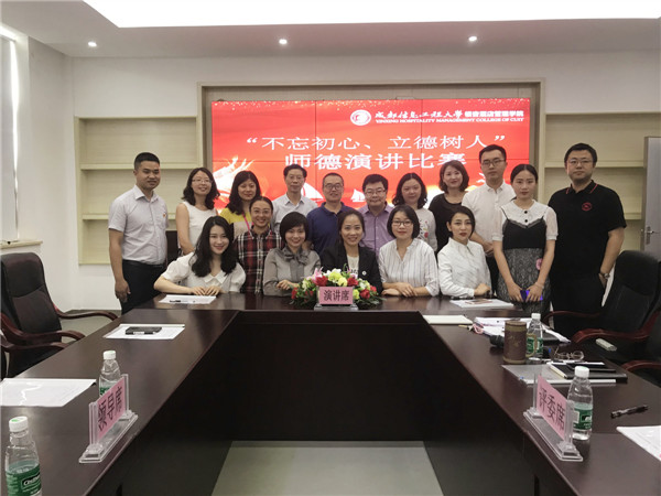 为深入贯彻中共中央 国务院关于全面深化新时代教师队伍建设改革的意见、中共四川省委 四川省人民政府关于全面深化新时代教师队伍建设改革的实施意见、全面落实教育部颁布的《新时代高校教师职业行为十项准则》,进一步弘扬高尚师德,深入发掘师德典型,广泛展示教师风采,树立教师队伍良好形象,形成强大正能量,根据《中共四川省委教育工作委员会四川省教育厅关于开展师德师风建设年活动的通知》及《四川省教育厅关于开展师德演讲比赛活动的通知》要求,2019年5月21日下午,学院在行政楼208室组织了“不忘初心、立德树人”师德演讲比赛活动。经各教学单位推荐,共10名教师参加本次比赛。学院院长张智勇,党委副书记桑作银,党委副书记、纪委书记、工会主席龚燕,副院长魏昭、易贤文,院长助理黄芳出席本次活动,学院部分未参赛教师及相关职能部门负责人到场观摩了比赛。