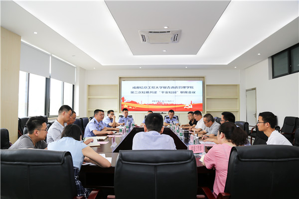 为进一步加强校地联动,推进“平安校园”建设,2019年6月12日上午,郫都区公安分局副局长曾邦建来校调研指导工作并出席学院第二次校地共建“平安校园”联席会议。红光街道党工委副书记杨斌、郫都区公安分局治安管理大队、红光派出所、红光街道综治办相关工作人员,学院院长张智勇、党委副书记桑作银、副院长易贤文、院长助理陈波出席会议,党委工作部、学生工作处、国际交流合作处负责人及保卫处办公室全体人员参加会议。