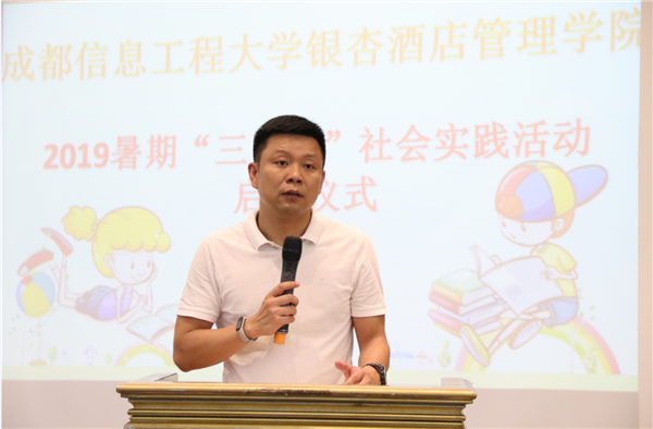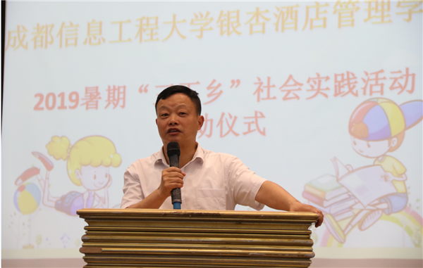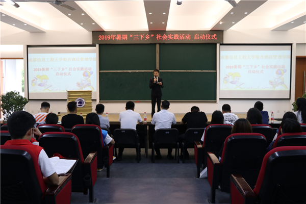7月4日,学院2019年大学生暑期“三下乡”社会实践活动启动仪式在1119报告厅举行。学院副院长易贤文,学生工作处处长、院团委书记李瑞泉,学生工作处副处长、院团委副书记黄华,以及各系的分团委书记和志愿者代表们参加了此次仪式。