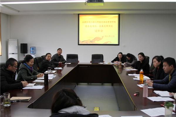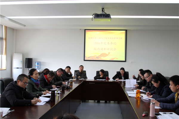 12月21日下午,成都信息工程大学银杏酒店管理学院在行政楼五楼会议室举行了2016年党建工作述职会议。学院党委成员、领导班子成员、党口各部门负责人、党总支书记(副书记)及直属支部书记、党员师生代表共23人出席会议。会议由党委副书记桑作银主持。