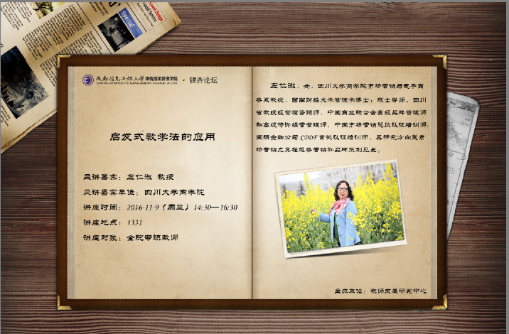 主讲人简介:左仁淑,女,四川大学商学院市场营销与电子商务系教授,西南财经大学管理学博士;硕士导师。四川省教授级管理咨询师,中国商业联合会高级品牌管理师和高级特许经营管理师,中国市场营销总监认证培训师;国际金融公司CPDF首批认证培训师,其研究方向是市场营销尤其在服务营销和品牌策划见长。